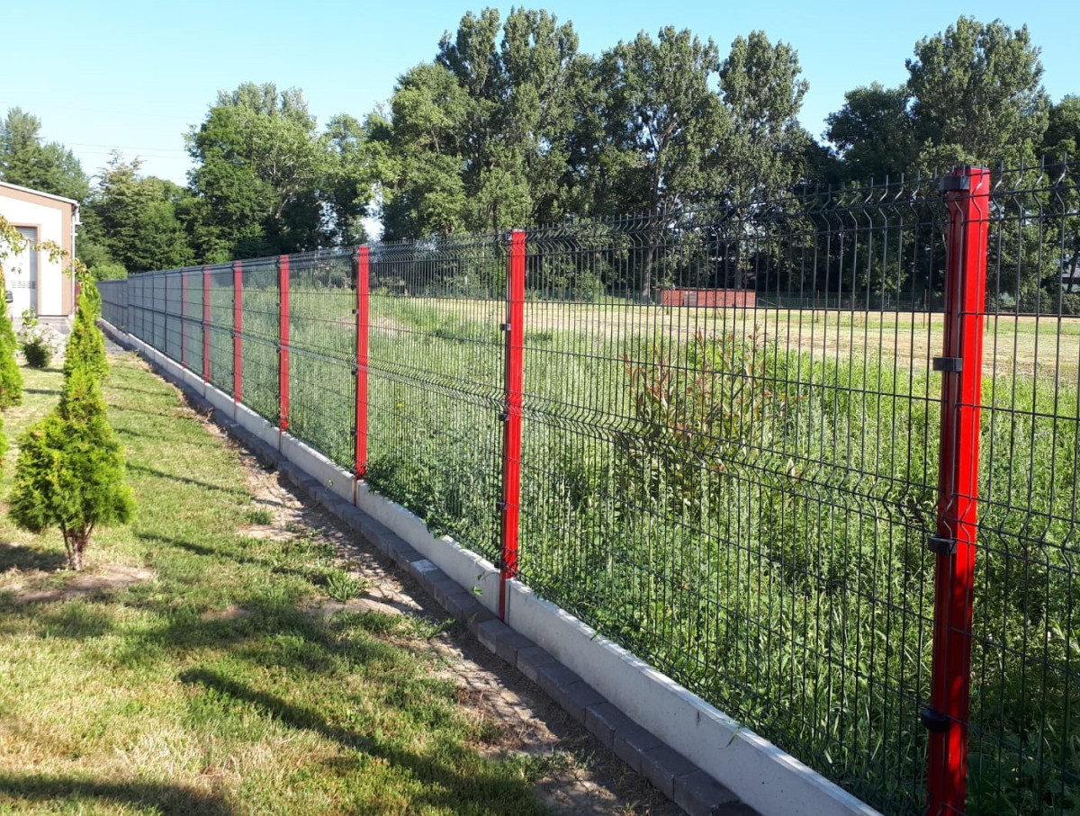 Šumperk, červenec 2019, 75bm svařované pletivo (Ral 7016), oranžové sloupky (RAL 2004) na PD.